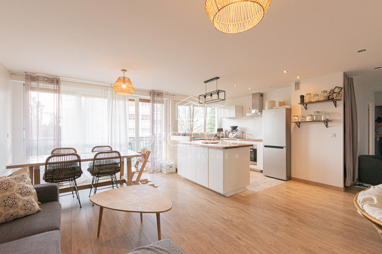 Dans une résidence recherchée, proche de tous commerces, joli appartement entièrement baigné de lumière, composé d’une entrée, cuisine équipée ouverte sur un séjour de 36 m2, donnant sur une terrasse de 15m2, deux chambres et une salle de bains. Nombreux rangements.