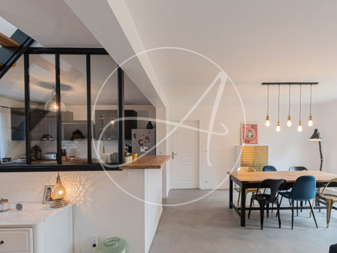 En plein centre ville et au calme, très belle maison contemporaine baignée de lumière offrant : entrée, séjour/salon cathédrale avec cheminée, 3 grandes chambres au rdc dont une suite parentale avec salle de bains et douche, dressing.